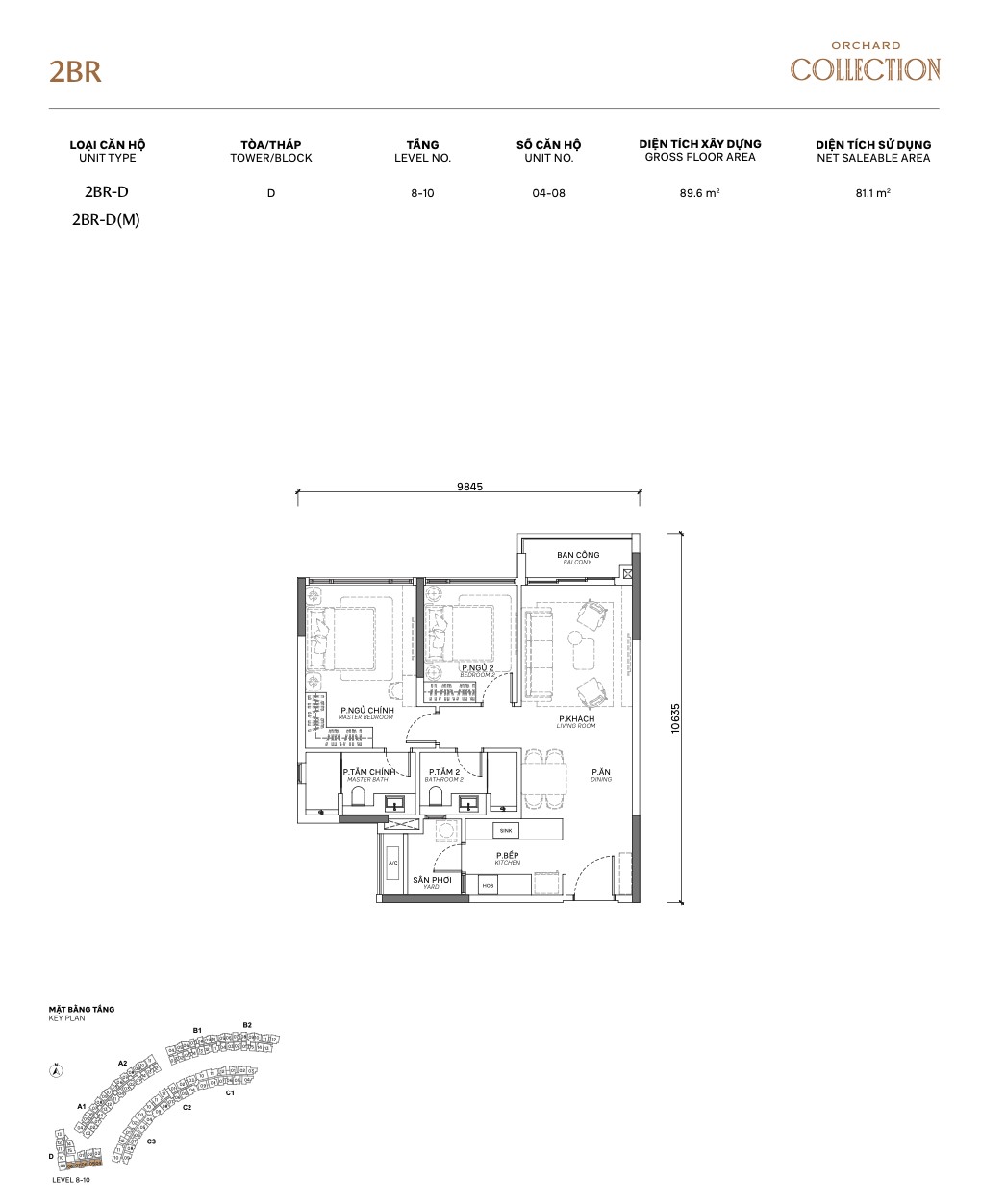| 2BR-D | ~82m² | ~67m² | Compact, efficient, higher yield | Investors |