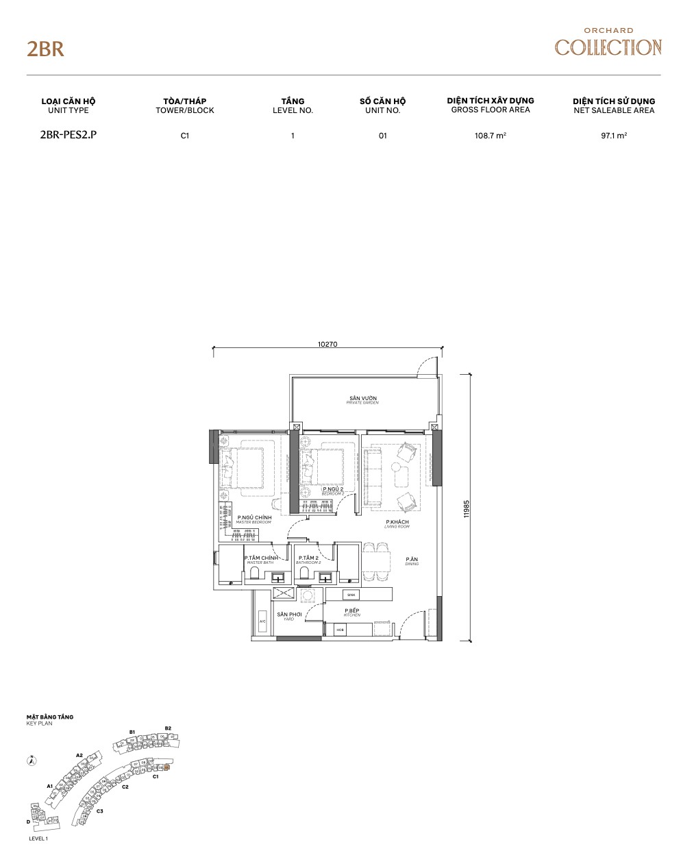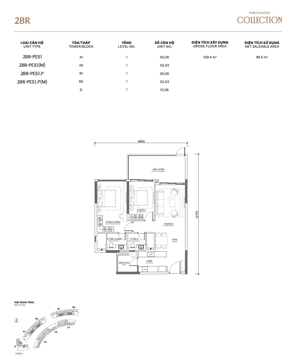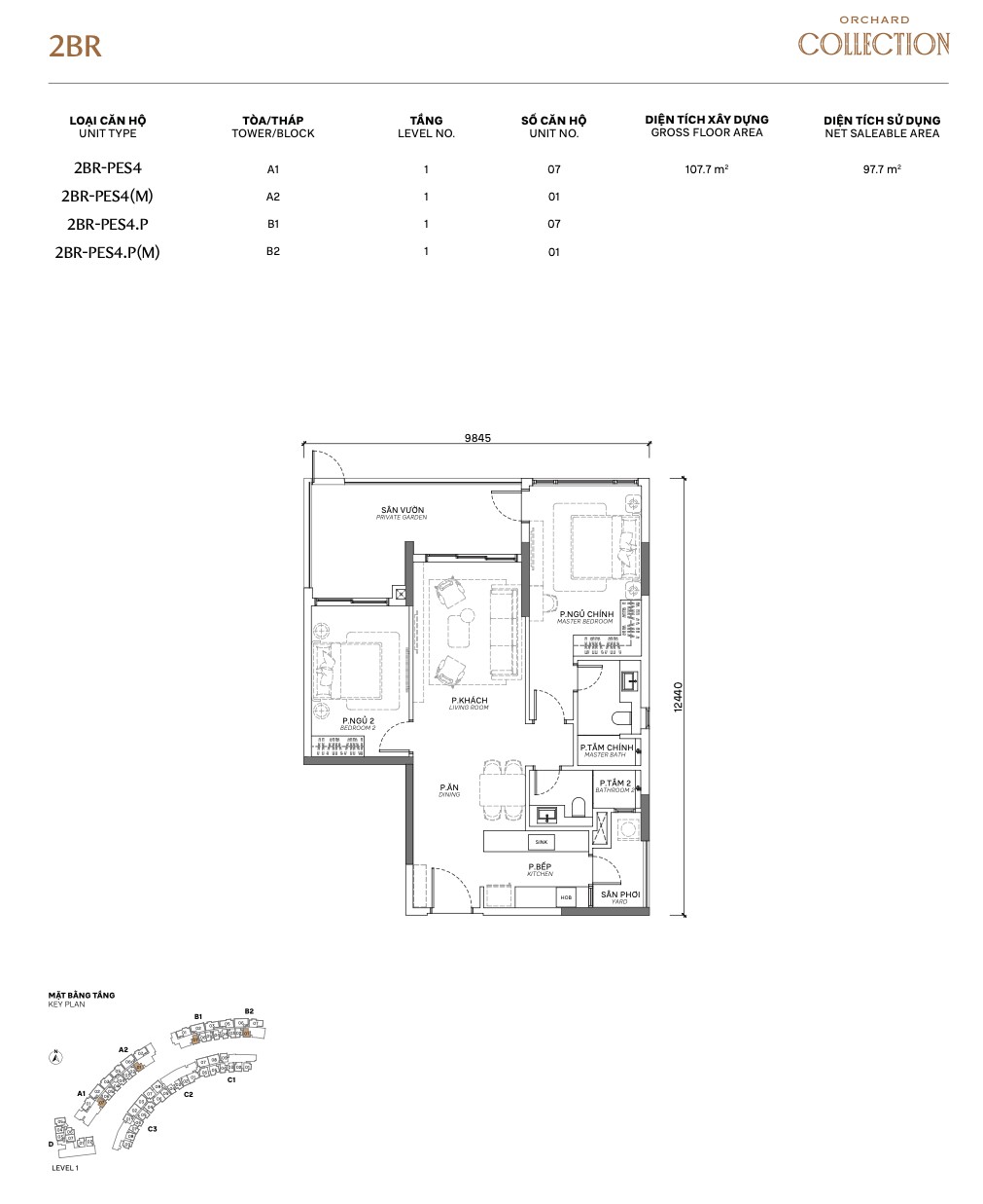 | 2BR PES | PES 1–7 + E-PES | 82–110m² | +20–80m² garden | 1 | A, B, C | Private garden — landed feel |