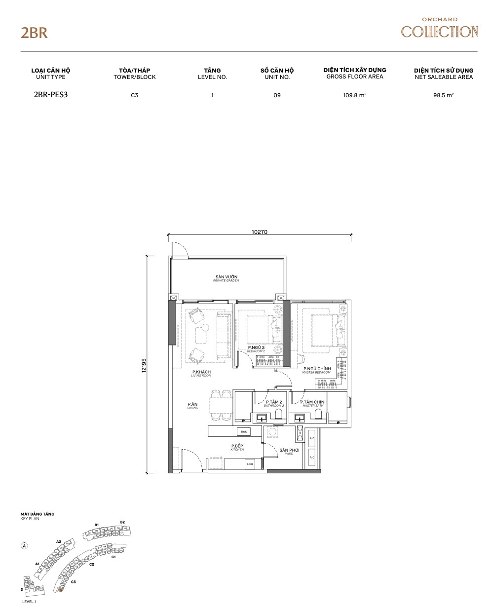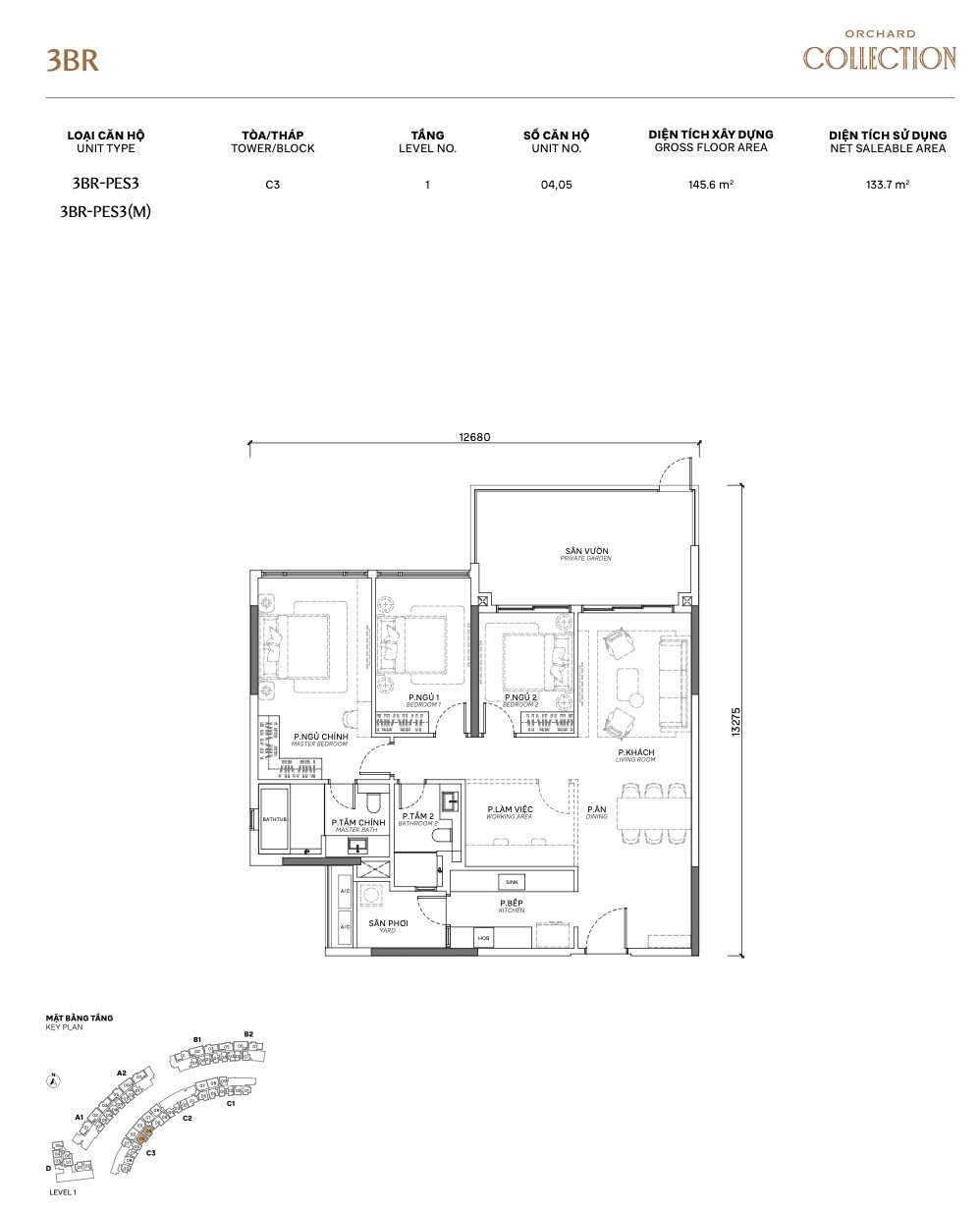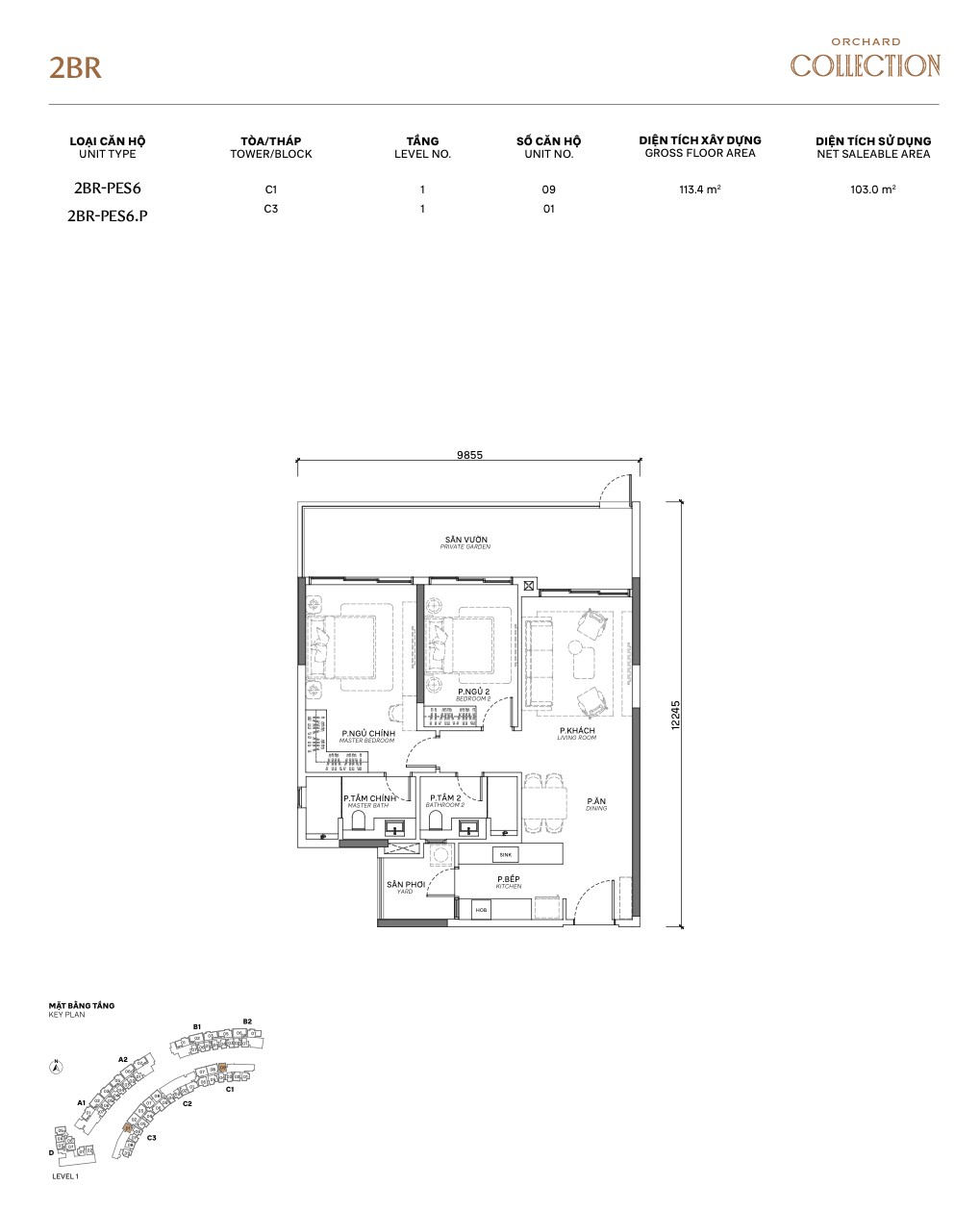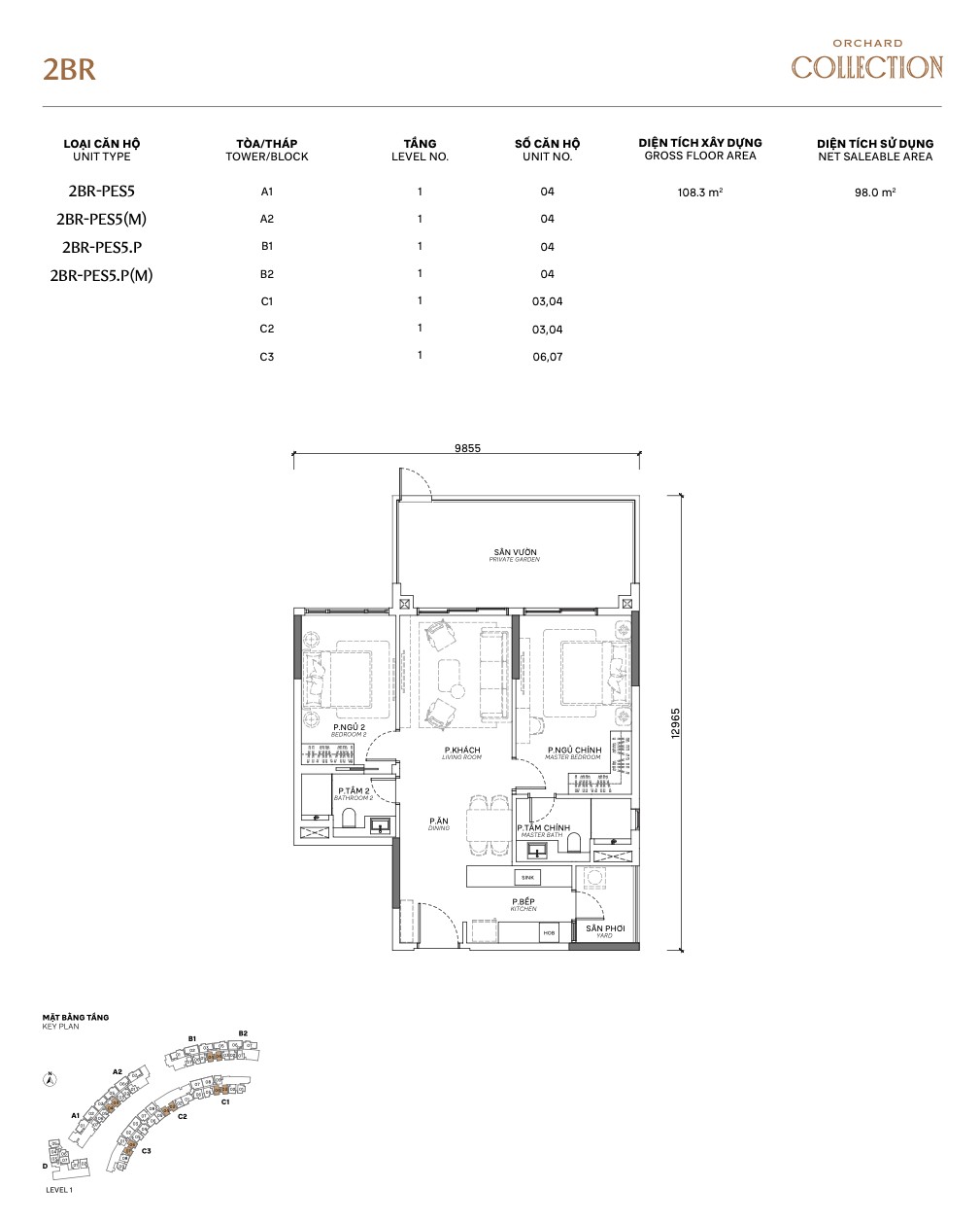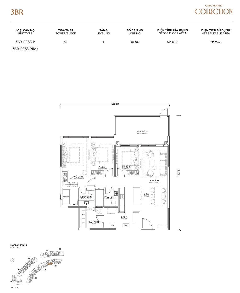 | 3BR PES | PES1.P / PES3 / PES3.P | 115–120m² | +garden | 1 | A, B, C | Garden + 3BR space |