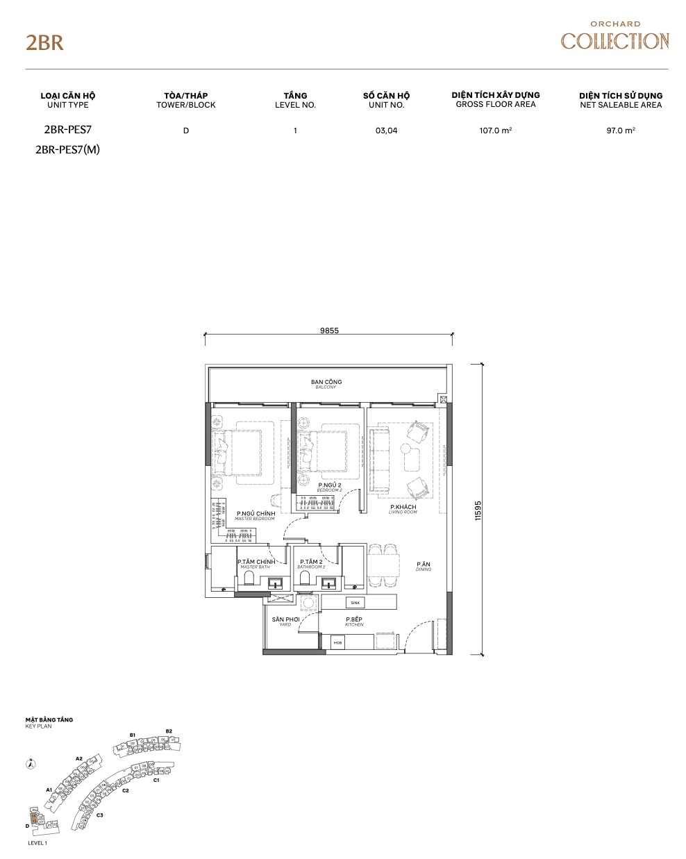 | 3BR PES | PES2 | 142.2m² | 128.8m² | 1 | D | Largest 3BR PES, Define tower |
