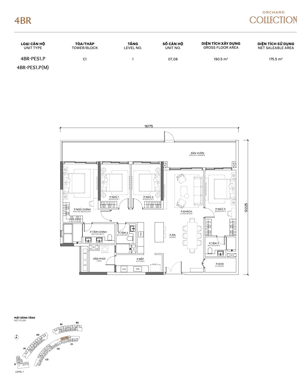 | 4BR PES | PES1 / PES1.P / PES2.P | ~158–165m² | +garden | 1 / upper | C | Multi-gen family flagship |