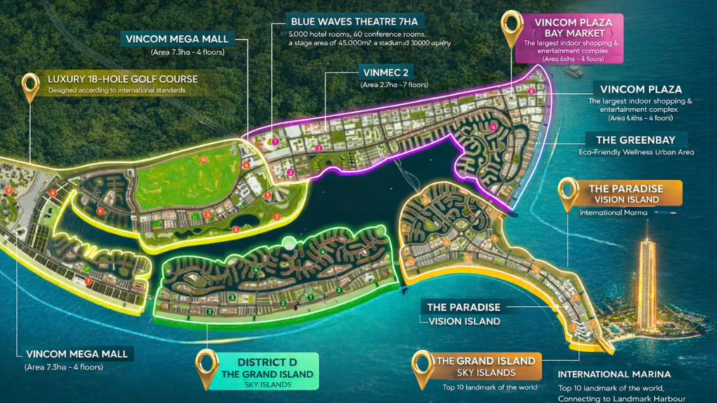 The Global City is designed by leading global firms such as Foster + Partners and WATG, applying internationally recognized standards in urban planning and architecture. The project integrates a comprehensive Live–Work–Play ecosystem, hosts world-class events, and features the longest go-kart track and the largest musical canal in Southeast Asia, alongside other premium facilities.