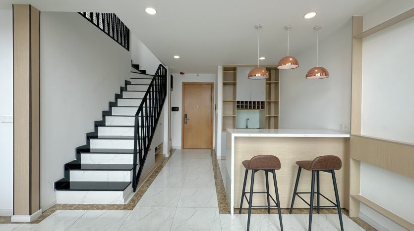 This spacious 134m² 3-bedroom duplex in Vista Verde, Thanh My Loi Ward, District 2, offers an elegant blend of comfort and style. Fully furnished with high-quality interiors, the home is thoughtfully designed for modern living across two floors. Large windows bring in abundant natural light, while the open-plan living and dining area create an inviting atmosphere. Located in a prime area near the Saigon River, the property provides easy access to the city center, making it ideal for families or professionals seeking convenience and luxury. Vista Verde residents enjoy extensive amenities, including a large gym, swimming pool, lush gardens, and 24/7 security, enhancing a vibrant lifestyle in the heart of District 2.