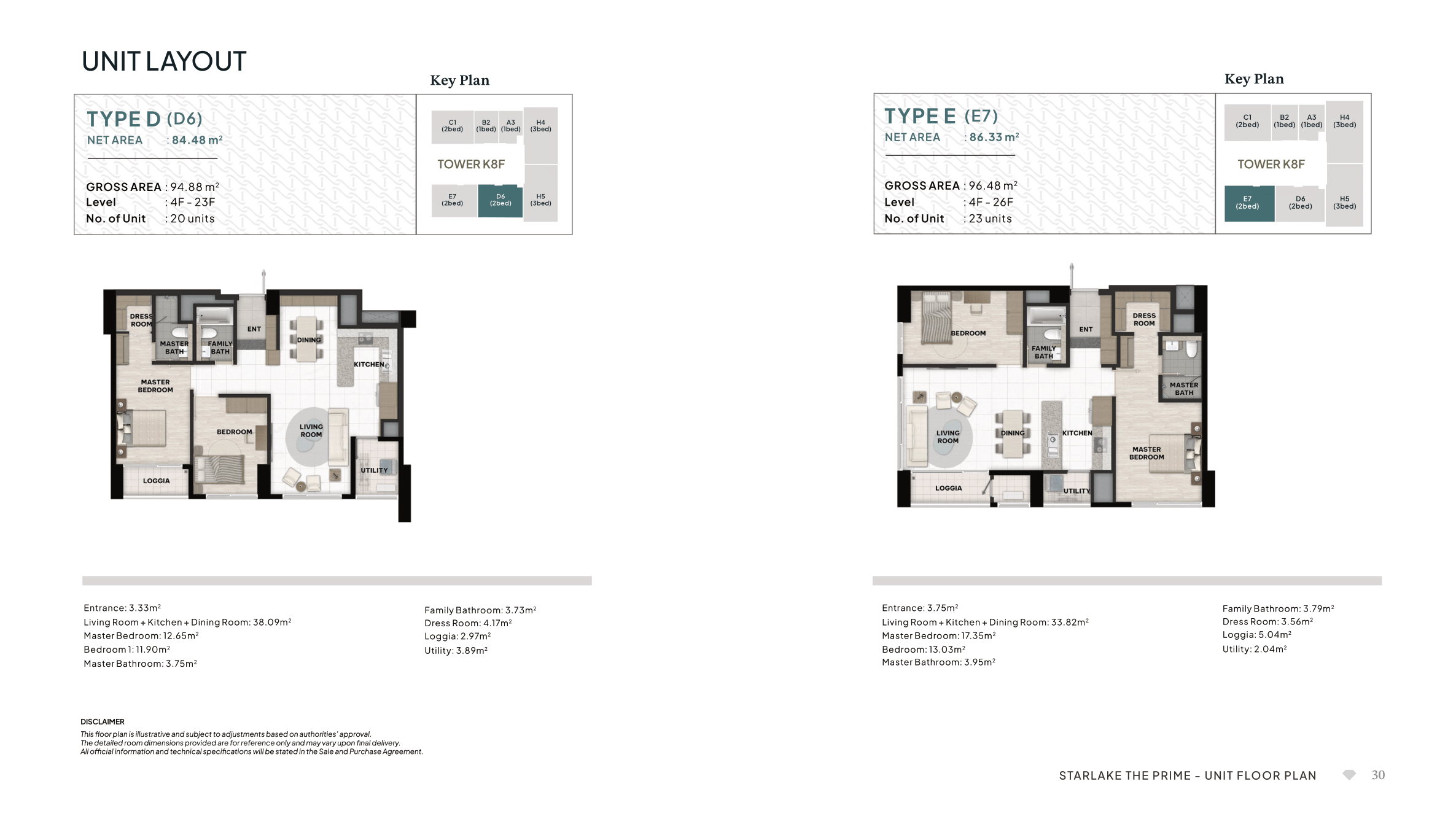 Starlake The Prime Layouts - Unit Type F & Type K