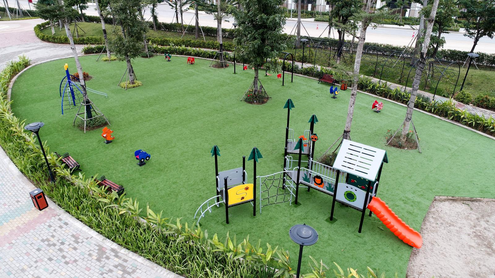 A 4.5-hectare regulating lake with walking paths and playgrounds