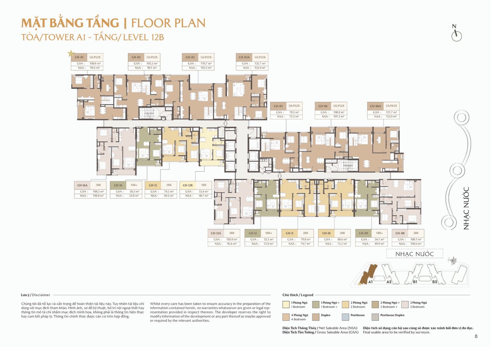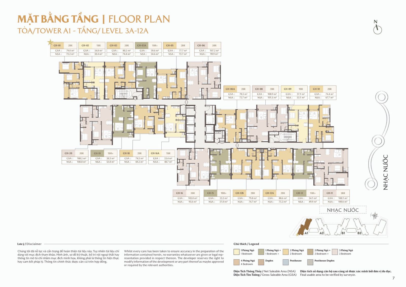 Masteri Park Place Tower A1 Layouts, Level 3A - 12A