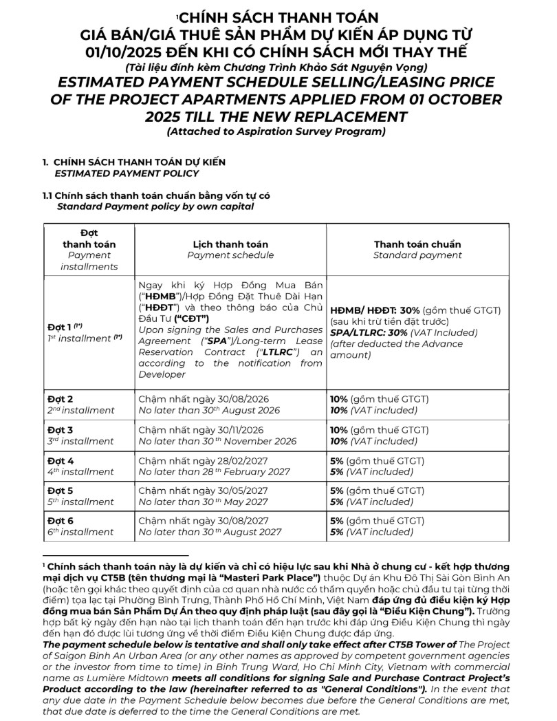 One of the strongest advantages of Tower A1 lies in its payment terms. Whether you’re buying to live or invest, the Masteri Park Place payment schedule is designed to support your financial planning with ease.
