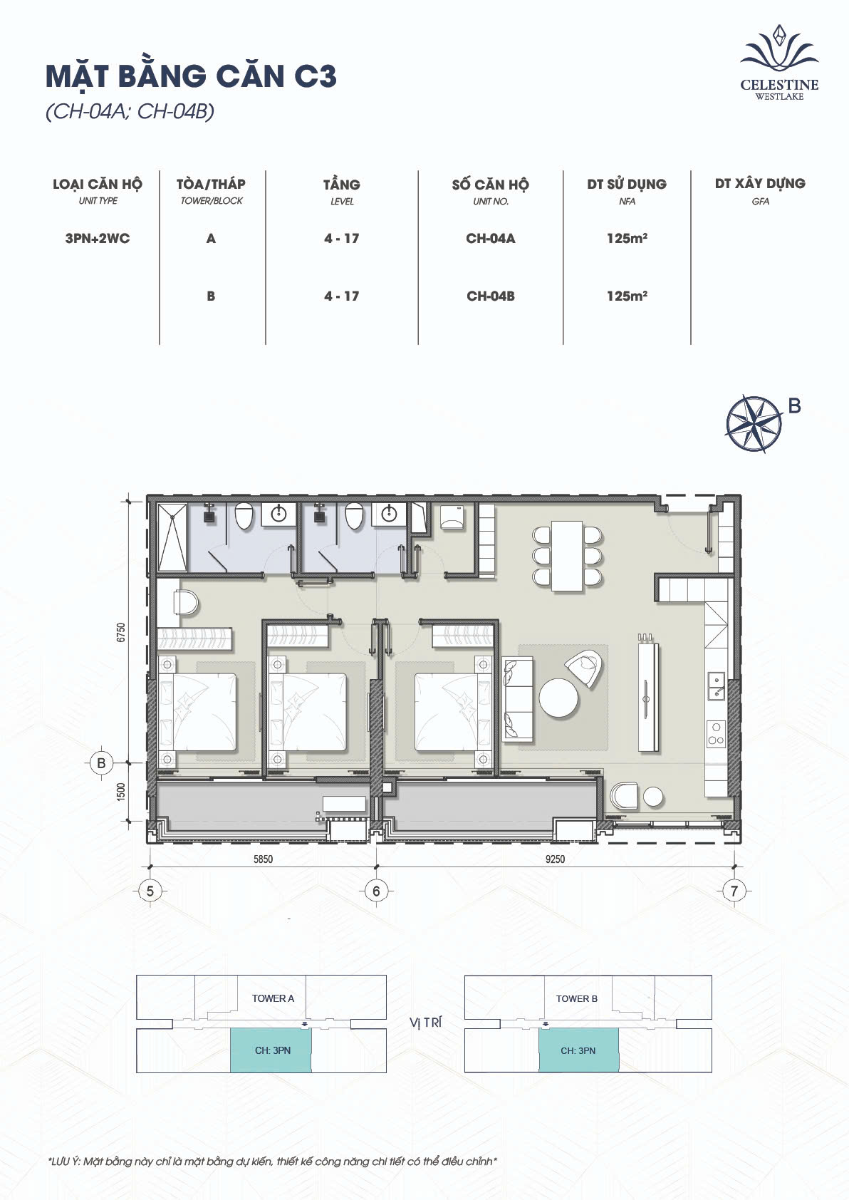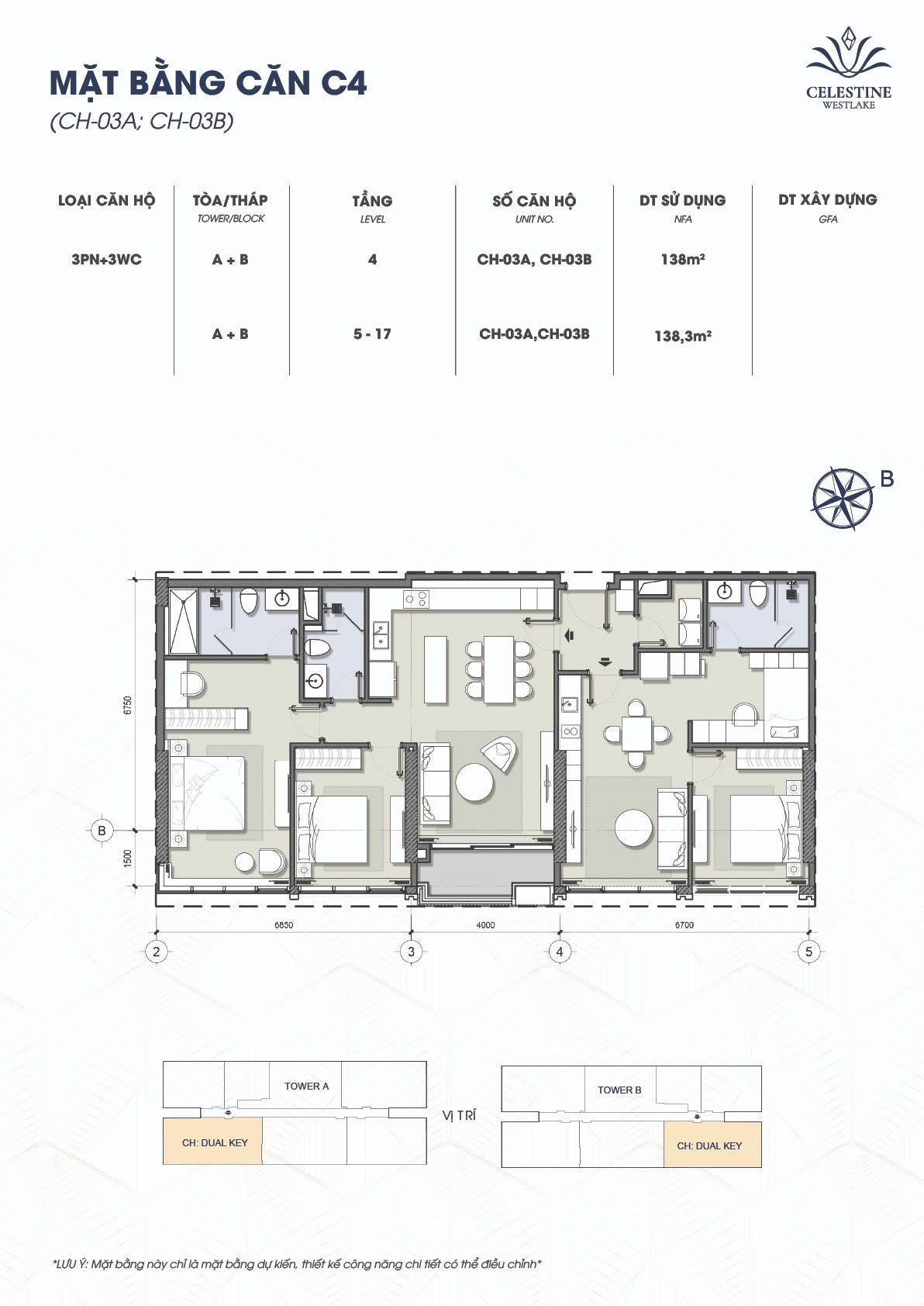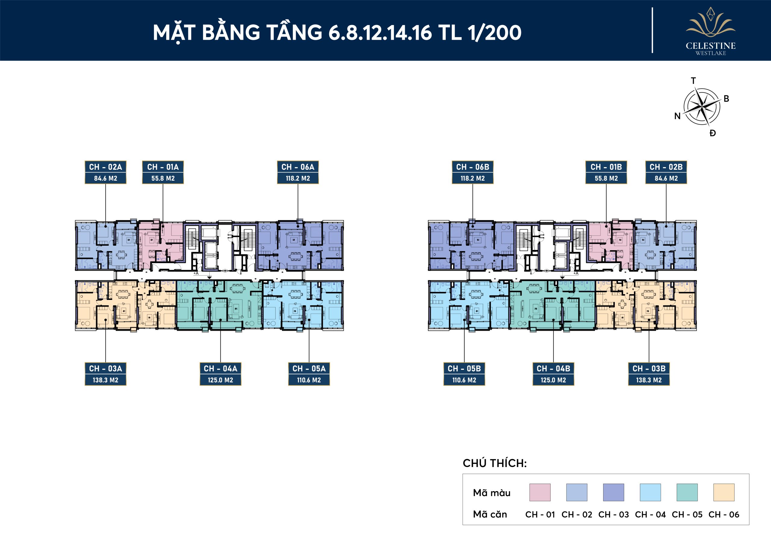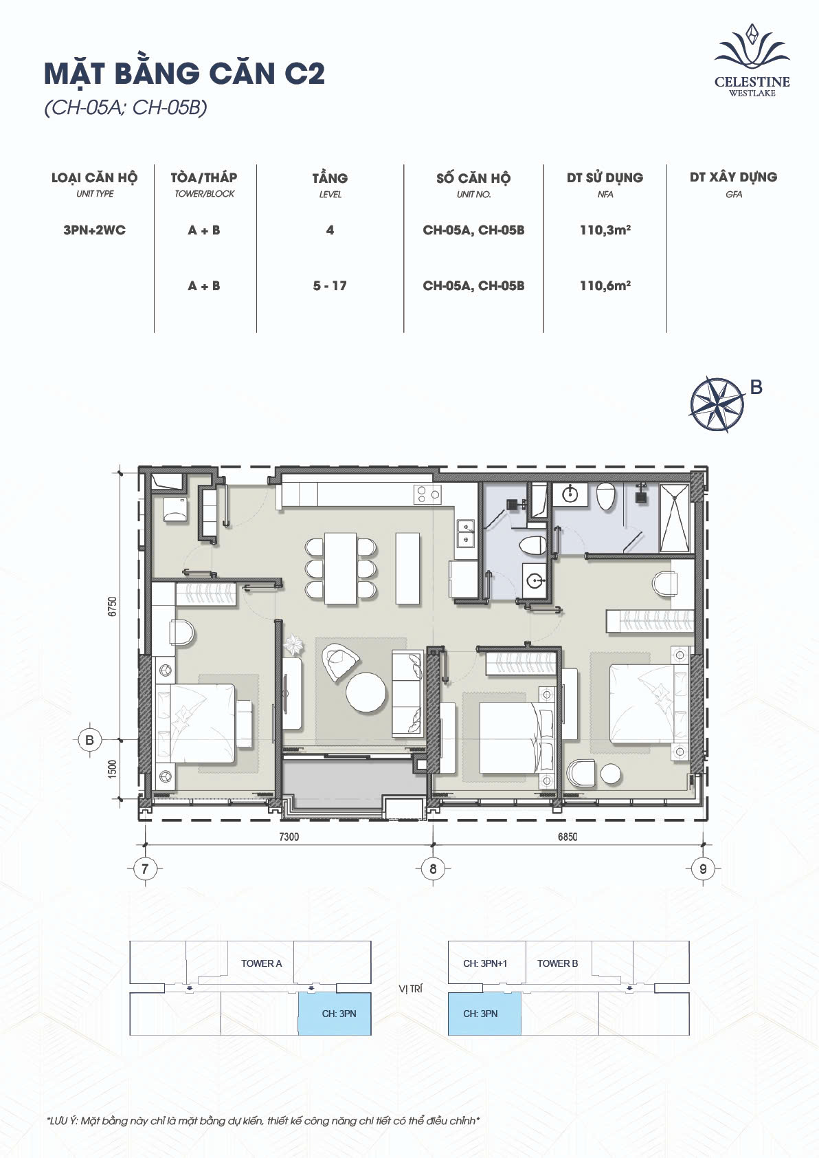 Celestine Westlake offers a variety of apartment types tailored for different lifestyles and family sizes. Prices are expected to range from VND 140 million/m² to VND 207.2 million/m²