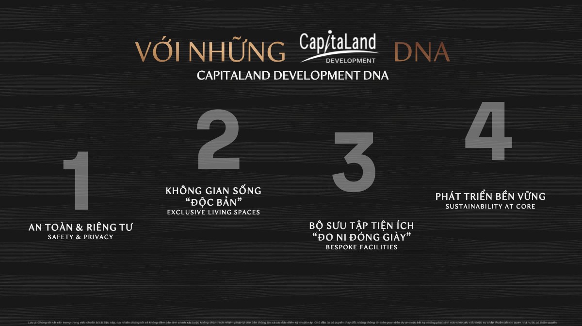 CapitaLand Development là một trong những tập đoàn bất động sản lớn nhất châu Á với hiện diện tại 45 quốc gia và hơn 270 thành phố. Tại Việt Nam từ năm 1994, CapitaLand đã triển khai hàng chục dự án thành công tại TP.HCM, Hà Nội, Đà Nẵng và Bình Dương.