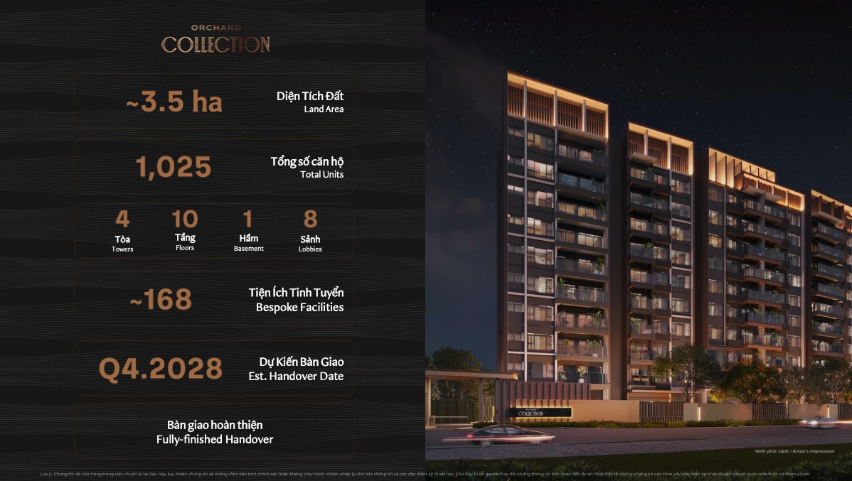 Orchard Collection là phân khu căn hộ cao tầng nằm trong khu đô thị tích hợp Sycamore rộng 18,9 ha tại Bình Dương. Dự án gồm 4 tòa tháp Atelier A, Bespoke B, Clio C và Define D với tổng cộng 1.025 căn hộ cao cấp. Đây là phân khu thứ 5 và cuối cùng của Sycamore — sau khi 4 phân khu trước đã sold out hoàn toàn.